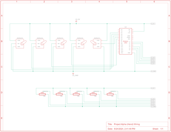 The attached wiring diagram is for testing the hand to determine if it can successfully grasp objects. This test is essential to evaluate the functionality and effectiveness of the design in real-world applications. I'd like to give credit to InMoov, as the design of this hand is based on their previous model. Please note that I am still currently working on this project, and further developments are ongoing.