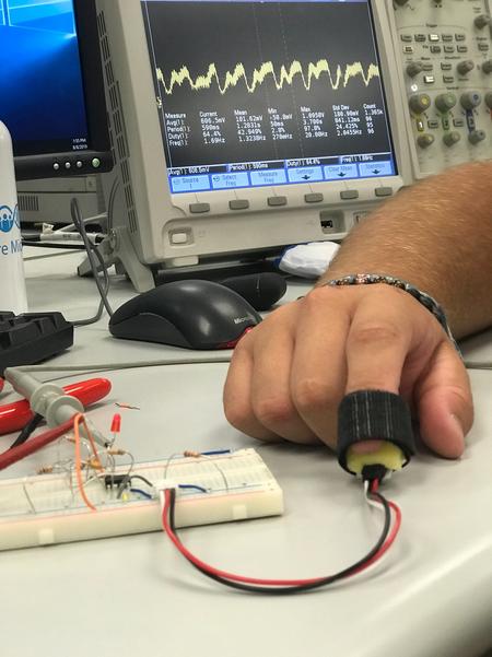 Unfortunately, I no longer have the designs and documents I created for this project as I was still in Highschool at the time. In the summer of 2019, during my sophmore year of high school, I attended a month-long Biomedical Engineering camp at Boise State University. During this program, I learned the fundamentals of circuit analysis and design. Below are pictures showcasing the process of creating the circuit, as well as the final working circuit.